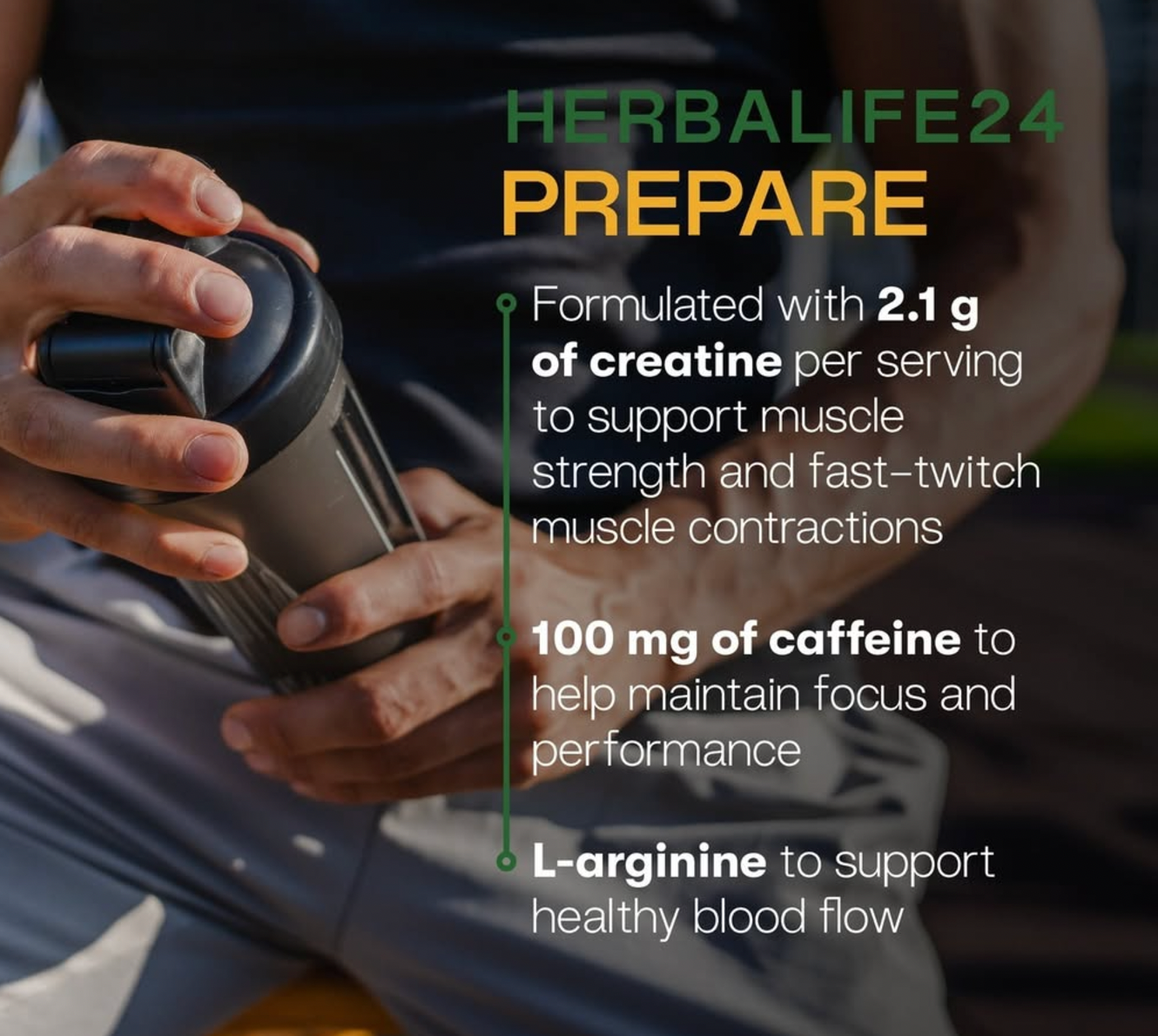 Since inadequate oxygen reaching the muscles limits performance, Prepare’s Nitric Oxide (NO) precursor system supports NO production, helping increase oxygen delivery to working muscles. Other ingredients include creatine, which supports fast-twitch muscle contraction required for explosive athletic movement.*