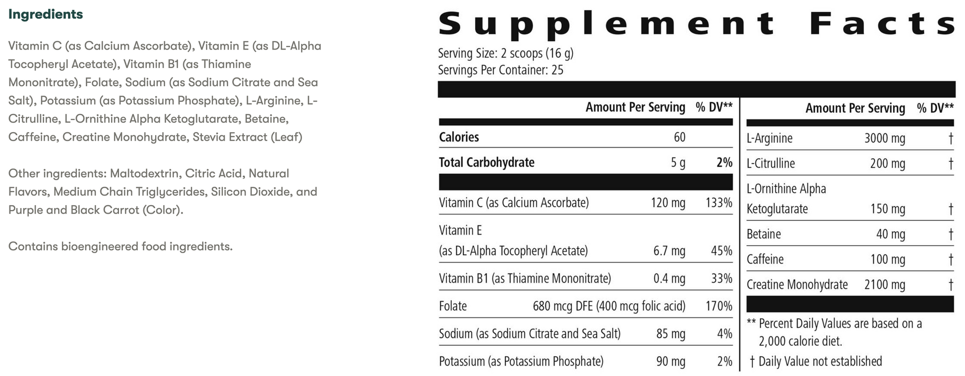 Pre-workout supplement. Please follow label directions: consume once a day prior to or during exercise.